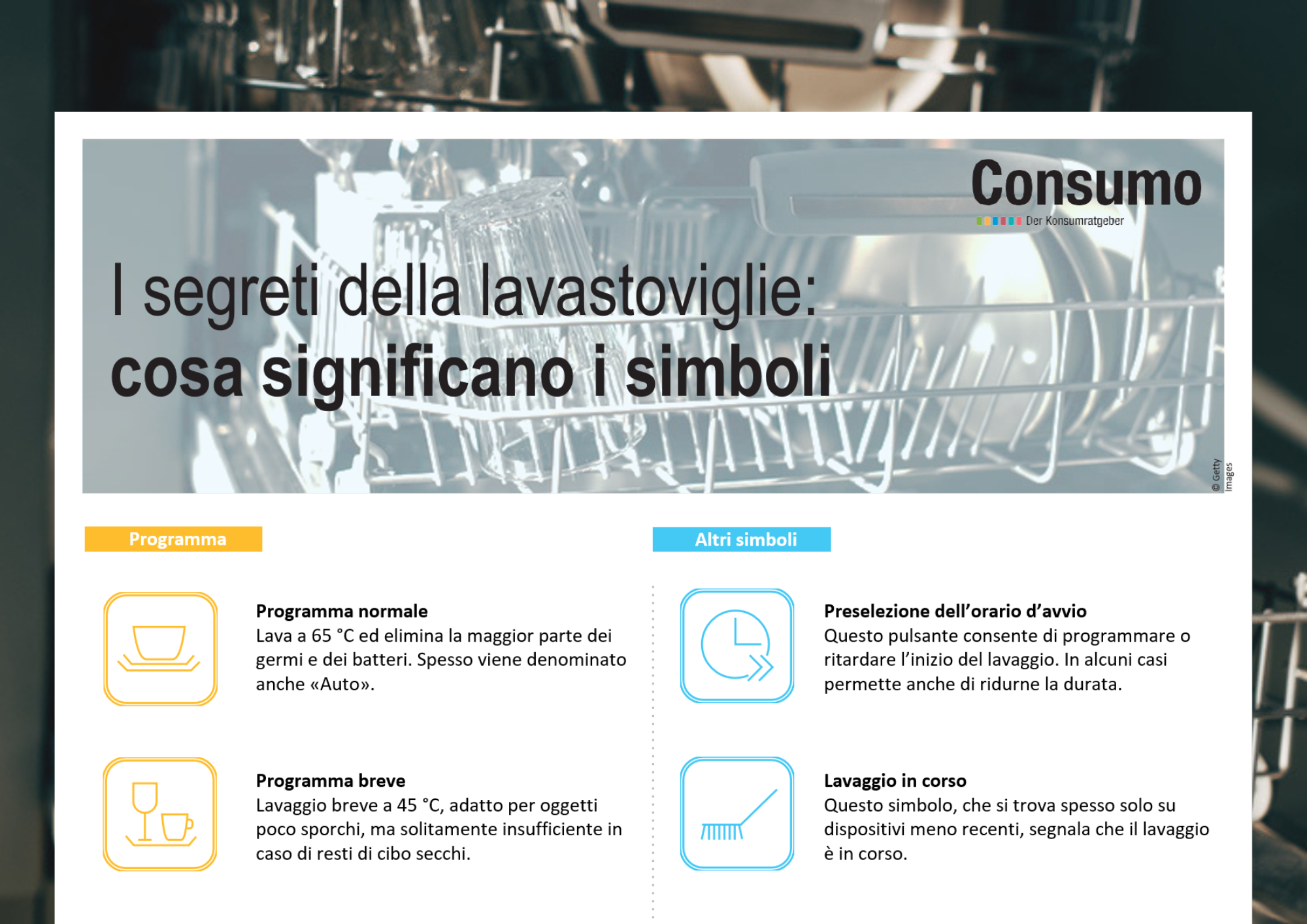 Panoramica dei simboli sulla lavastoviglie da stampare e appendere