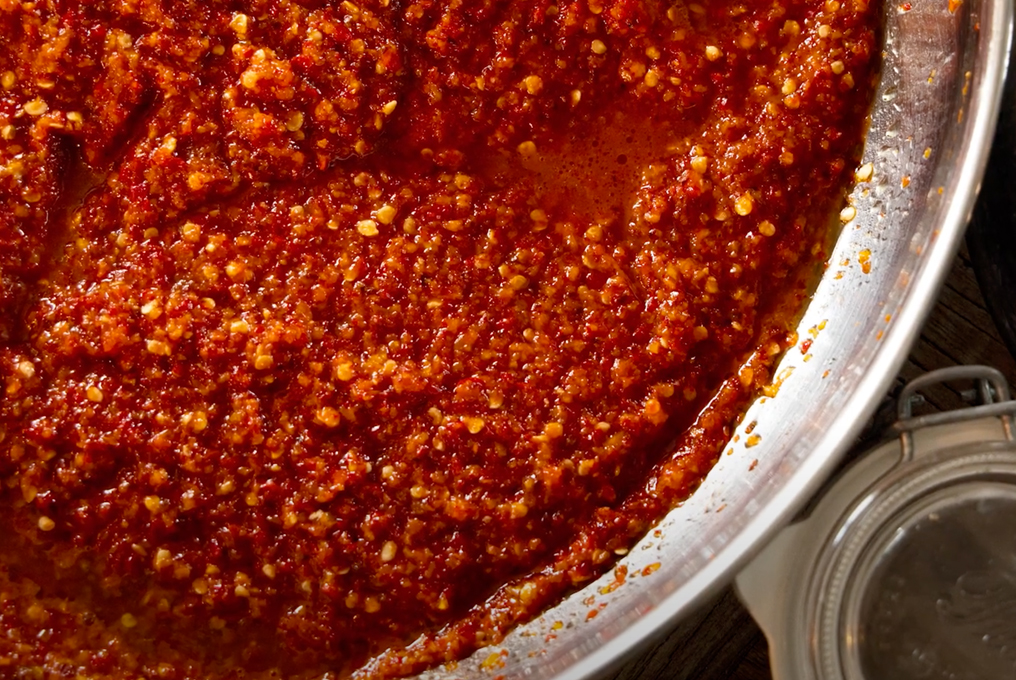Chilipaste aus frischen Chilis und Salz