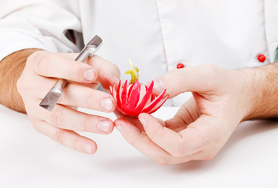 Schon jedes Kind weiss: «Das Auge isst mit»! Wenn Karotten zu Blumen werden, Tomaten zu Rosen und Äpfel zu Schwänen, dann schmeckt das Gemüse gleich doppelt so gut. Viele Gemüsesorten eignen sich hervorragend als hübsche essbare Dekoration für kalte Platten oder warme Gerichte. Die traditionelle Technik des Gemüseschnitzens kommt ursprünglich aus Asien und hat schon lange Einzug in unsere Restaurants und in die Brotdosen unserer Kinder gehalten. Viele der Skulpturen sind auch für Anfänger geeignet. Wir haben Ihnen drei einfache Schritt-für-Schritt-Anleitungen zusammengestellt, mit denen Sie den perfekten Einstieg ins Gemüseschnitzen finden.