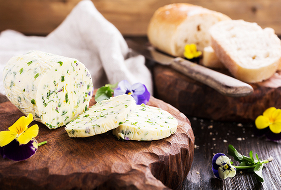 Zimmerwarme Butter schaumig aufschlagen, restliche Zutaten unterrühren. Zur Rolle formen, im Kühlschrank fest werden lassen.