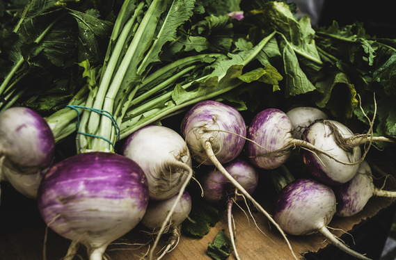 Mairüben, Mairübchen oder auch Navetten (französisch für Speiserübe) sind in der Küche echte Multitalente. Ihr süssliches, helles Fleisch schmeckt roh im Salat, begeistert aber auch gedünstet als leckere Beilage. Die Blätter kommen wie Spinat zum Einsatz und selbst die Wurzeln sind essbar. Ob Sie die Mairübe roh oder gekocht bevorzugen, ist Geschmackssache. Gekocht verliert das Gemüse etwas an Schärfe. Wenn Sie die Mairübchen roh servieren, empfiehlt es sich, sie aufgrund ihrer harten Schale vorher zu schälen. Das Beste am Allrounder-Gemüse: Mairüben sind wahre Vitaminbomben und damit in der kalten Jahreszeit als Immunbooster nicht zu unterschätzen. Sie gehören zu den ältesten Gemüsesorten der Welt und versorgen uns mit wertvollen Vitaminen der B-Gruppe, Folsäure, Zink und Eisen. In den Blättern ist außerdem eine Extra-Dosis Vitamin C enthalten.