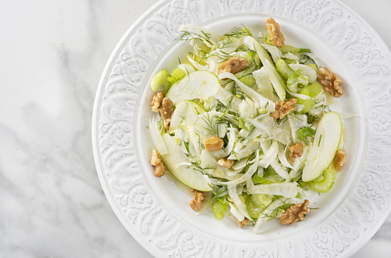 Oder richten Sie einen Birnen-, Dattel- und Walnusssalat auf gemischten Salatblättern und Brunnenkresse an. Dazu passt ein Dressing mit edlem Blauschimmelkäse, Creme fraîche und Ingwersirup. Auch hier wird mit Salz und Pfeffer abgeschmeckt.