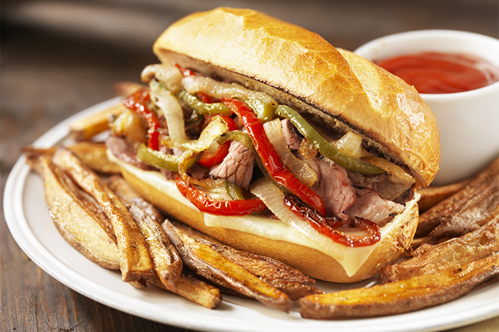 Das herzhafte Cheesesteak, auch Philly Cheesesteak genannt, entstand um 1930 in Philadelphia und hat die Welt im Sturm erobert. Angeblich haben wir die Sandwich-Variante den Brüdern Pat und Harry Olivieri zu verdanken. Die Hot-Dog-Verkäufer kreierten den amerikanischen Klassiker wohl aus Zufall beim Experimentieren. In ein langes Brötchen werden für das traditionelle Philly Cheesesteak Rindersteak-Streifen, geschmolzener Käse, gebratene Zwiebeln und Paprika gegeben. Damit das Sandwich schön saftig wird, greift man am besten zu Rib-Eye-Steak, das entweder auf dem Grill oder in einer heissen Pfanne kurz und scharf angebraten wird. In Philadelphia werden zur Zubereitung traditionell nur Hoagie-Brötchen verwendet, die durch ihre Form und die leichte Süsse dem Hot-Dog-Brötchen ähneln.
