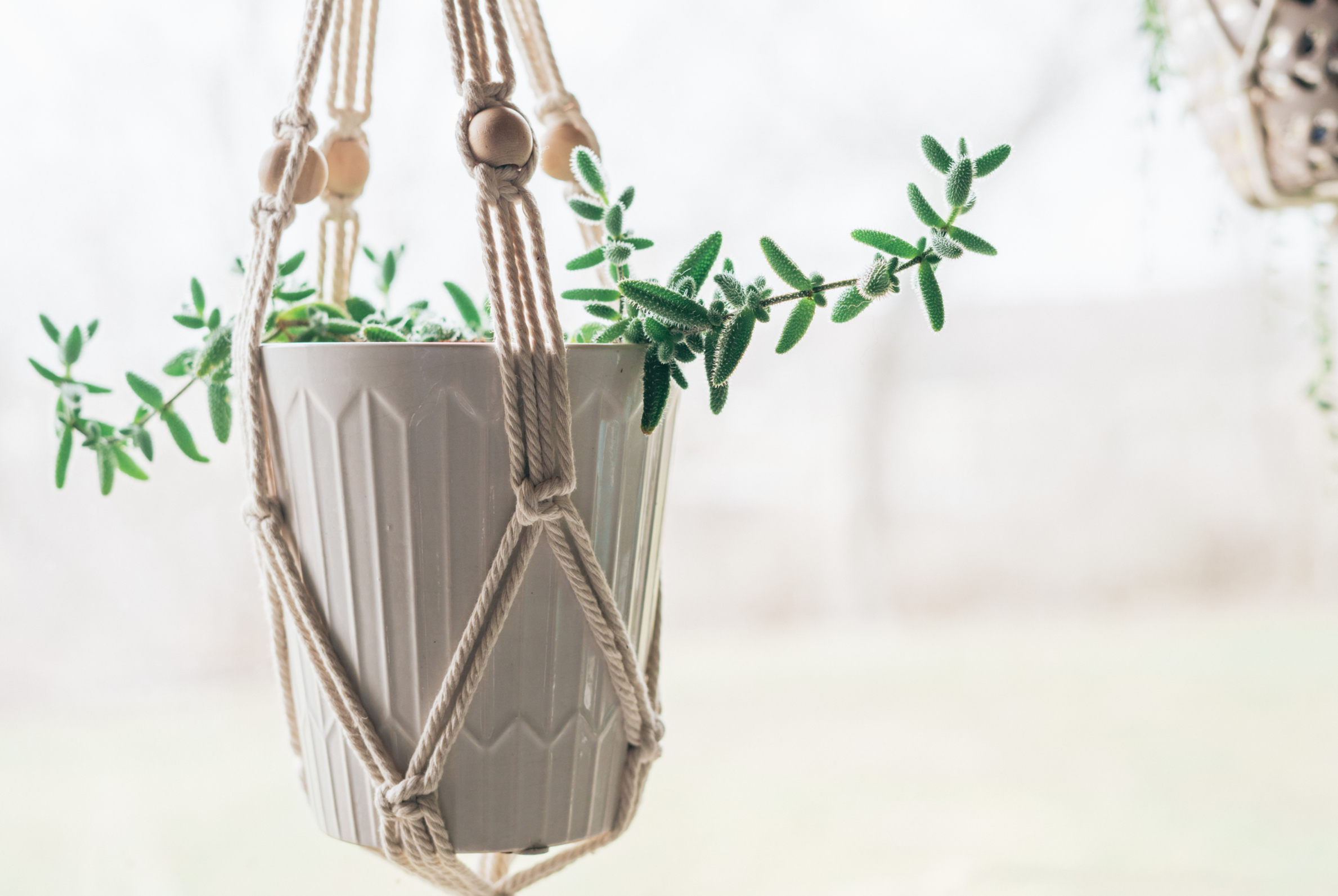 Das Gute an Blumenampeln aus Makramee: Die Kreationen sind für Blumengefässe in unterschiedlichen Grössen geeignet. Wenn Ihnen danach ist, können Sie sogar eine Vase mit frischen Schnittblumen darin aufhängen.