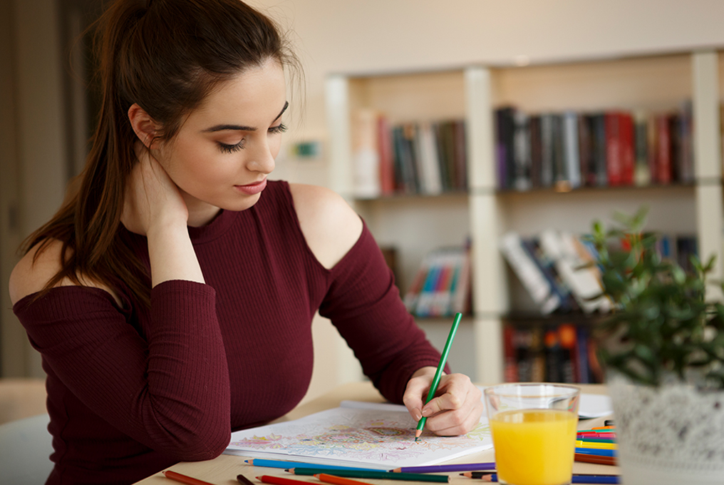 Für eine tiefe Entspannung malen Sie am besten ungestört und ohne Zeitdruck. Schliessen Sie zum Beispiel die Tür, hören Sie beruhigende Musik oder legen Sie Ihr Handy weg.
