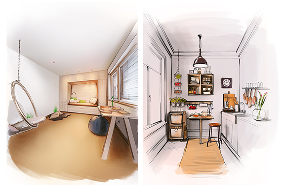 Si vos espaces sont exigus, mieux vaut éviter l’association hétéroclite de tonalités. L’abondance de couleurs stimule certes la bonne humeur, mais peut surcharger une pièce, la rapetisser et la faire paraître chaotique. La solution consiste à miser sur un concept de couleurs cohérent, c’est-à-dire sur des nuances qui sont de la même famille ou qui se complètent avec élégance (comme le blanc et le noir, par exemple). L’effet obtenu sera celui d’une pièce bien pensée et agréablement organisée. A l’heure actuelle, les concepts monochromes – ton sur ton – ont beaucoup de succès. En général, il est conseillé de ne pas utiliser plus de deux ou trois couleurs dans des chambres de dimensions modestes.