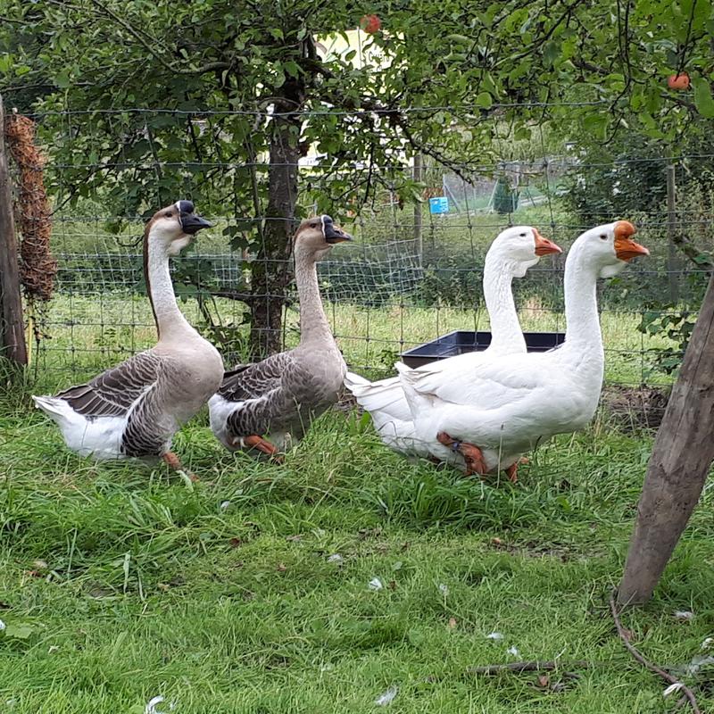 Alexander Morf si è specializzato in alcune poche razze rare: oche cignoidi africane, oche ovaiole tedesche, oche di Empordà dalla Spagna, anatre mute, anatre Pomerania e anatre ciuffate, che alleva al pascolo con amore e passione durante tutto l’anno.