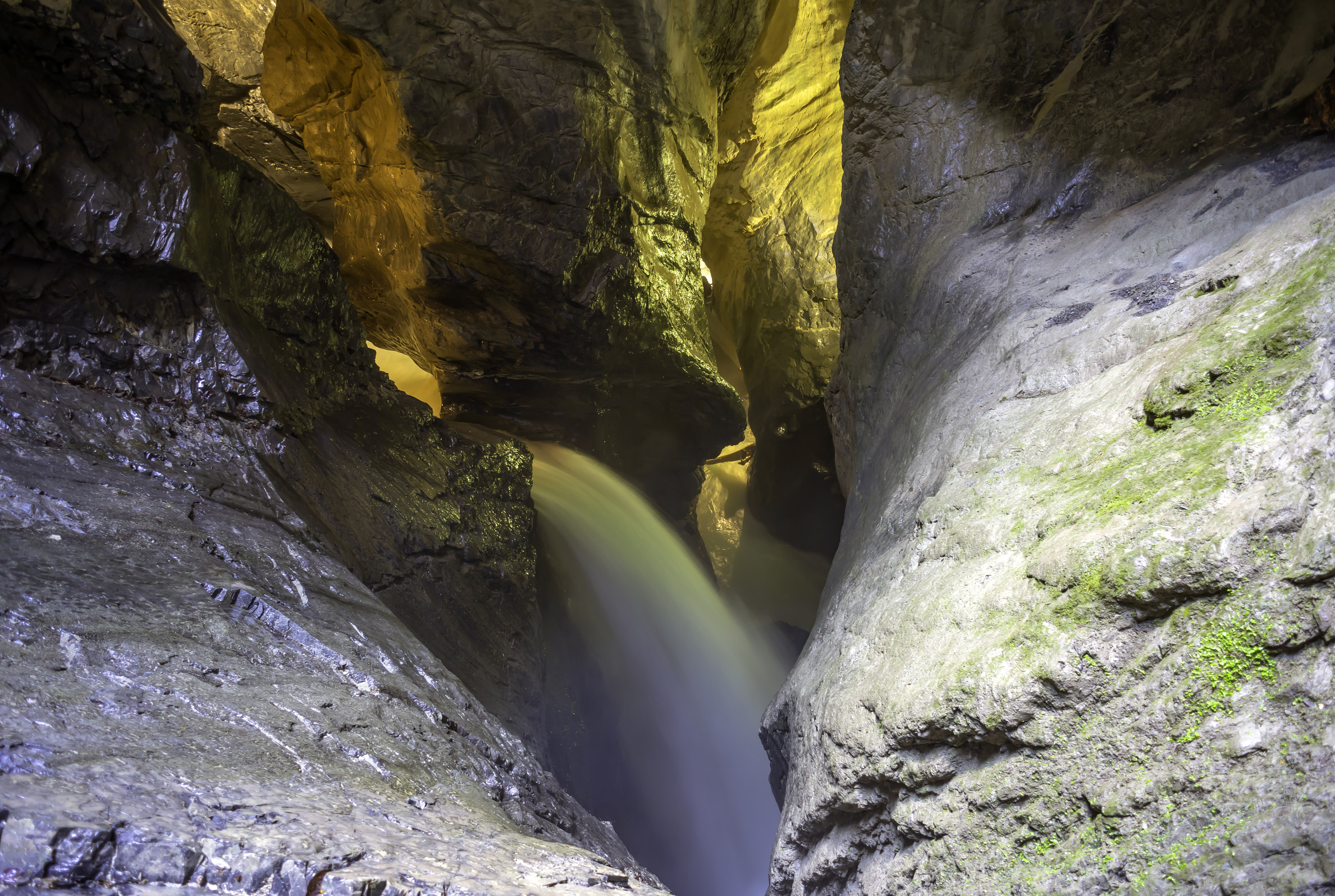 L’attrazione acquatica successiva si trova a uno o due ore di marcia da Lauterbrunnen: le cascate sotterranee del Trümmelbach. Le acque provenienti dalle pareti glaciali dei monti Eiger (3970 m), Mönch (4099 m) e Jungfrau (4158 m) si insinuano ruggendo tra le rocce. Nel corso dei millenni l’acqua ha creato uno straordinario labirinto di roccia, scavando profonde gole. Durante il disgelo una quantità d’acqua che raggiunge i 20‘000 litri al secondo si getta nell’abisso. Le cascate sono visitabili grazie a un ascensore, a scalini, sentieri e piattaforme.