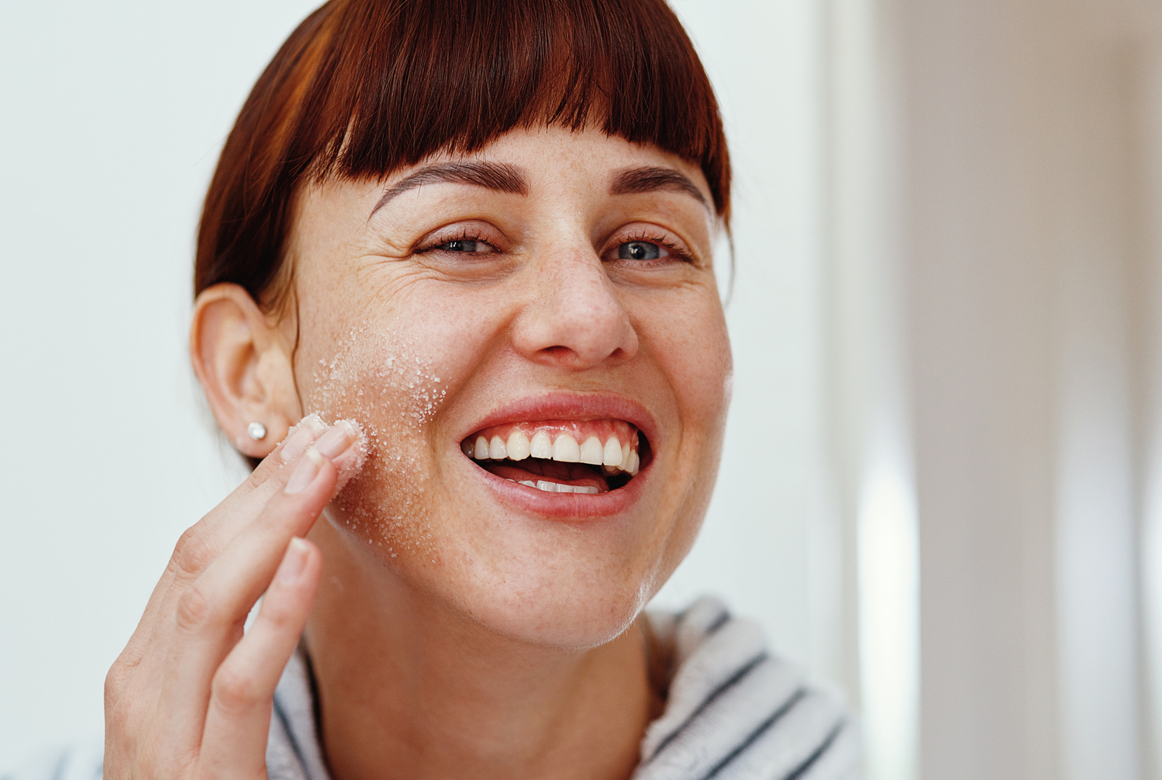 4. Une fois par semaine, il est conseillé d’effectuer un peeling pour débarrasser l’épiderme de ses cellules mortes et le préparer à recevoir la lotion ou la crème. Si votre peau est à tendance grasse et présente beaucoup d’impuretés, optez pour un peeling chimique aux acides de fruits. Mais attention: ce type de traitement assèche drastiquement les peaux sensibles. Si c’est votre cas, nous vous recommandons un peeling mécanique composé, par exemple, de fins cristaux de sucre ou de sel, qui permet d’éliminer la couche supérieure de l’épiderme via un doux frottement. Une fois le peeling terminé, appliquez toujours une crème hydratante pour le visage.